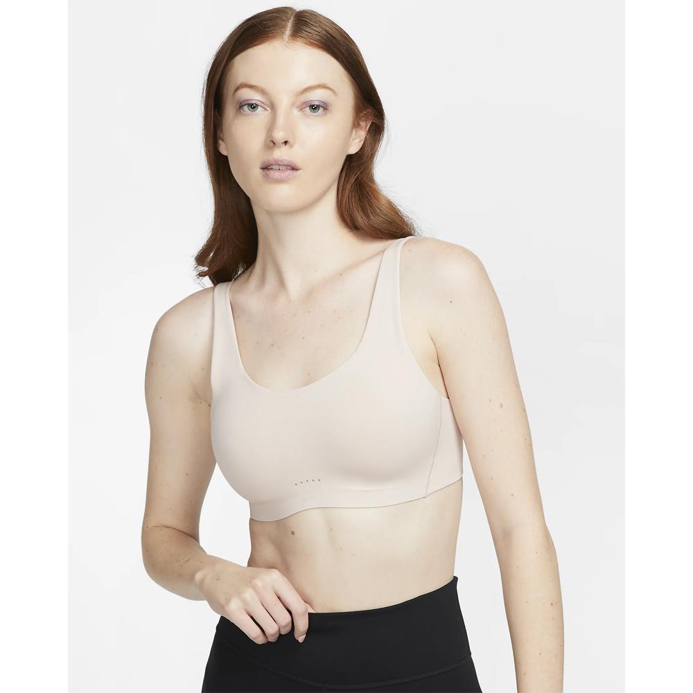 Good for everyday use or athletics. Just because you're changing scenery doesn't mean you should have to change your bra. Offering all-day support without sacrificing comfort, the Nike Alate Coverage Bra is so impossibly light you'll barely notice you're wearing it whether you're reaching for new heights or enjoying a moment of stillness. With innovative, stretchy pads, adjustable straps and smooth, sweat-wicking fabric, this full-coverage bra helps you tackle everything your day demands. This product is made with at least 50% recycled polyester fibers.