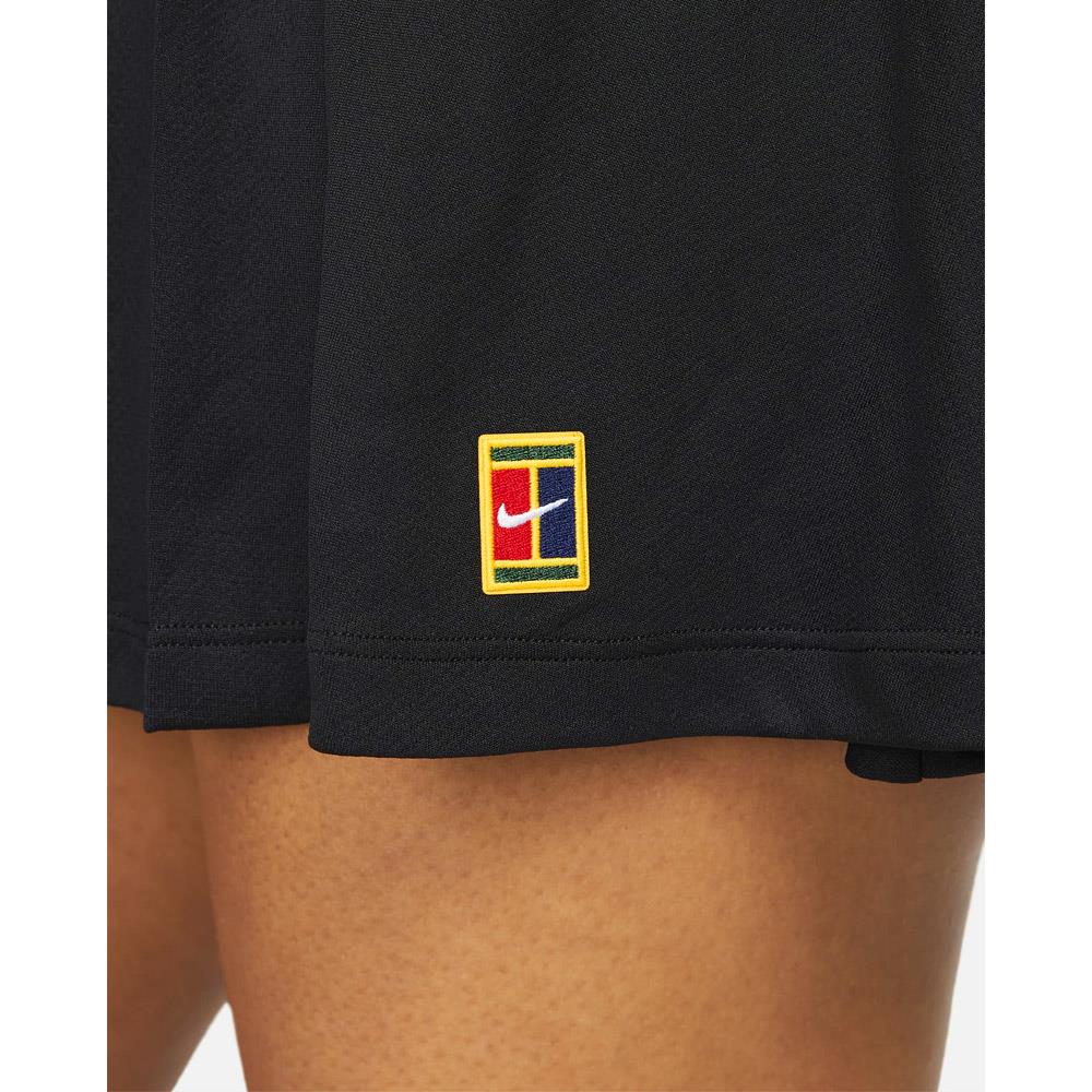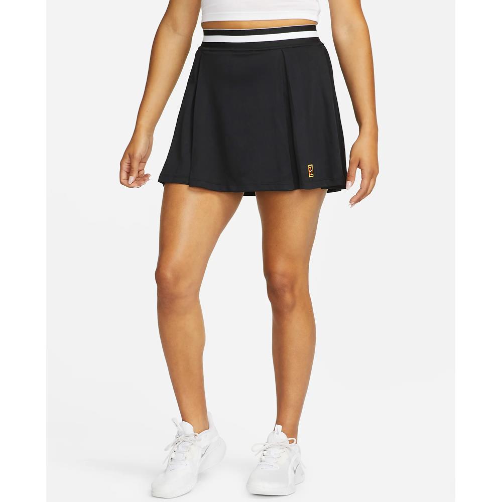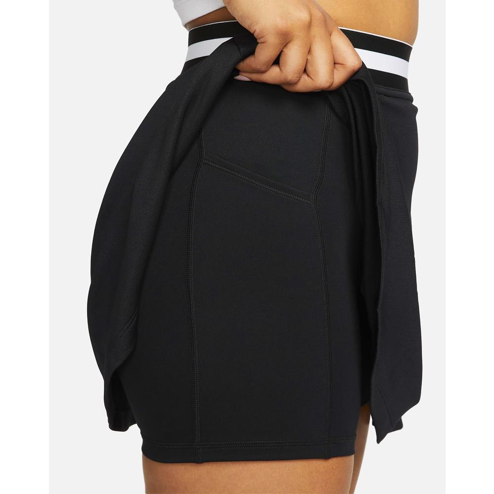 Sleek black tennis and pickleball skirt. Whether you're warming up on the court or lounging at home, this tennis skirt provides timeless style and function. Striped taping on the waistband adds a classic, sporty look, while lightweight, sweat-wicking fabric helps keep you comfortable as you take on all your dynamic movements. Store an extra ball in the pocket of the inner shorts so you're always ready for your next serve.