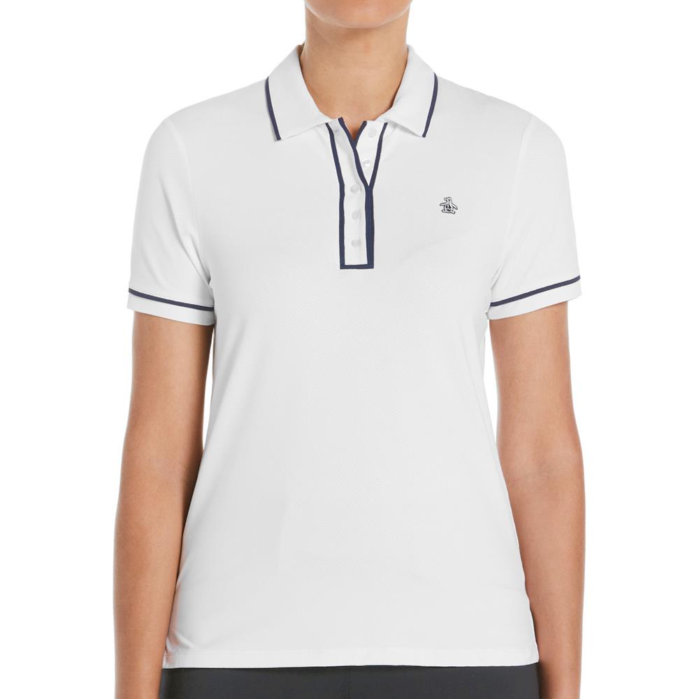Elegant style in a great polo in classic white. This polo top is made from pique fabric that features a subtle texture with contrast colour piping to give your tennis/ pickleball/ golf wear a stylish and refined touch. Built for comfort on the course as well, this polo is finished with stretch for a full range of motion.