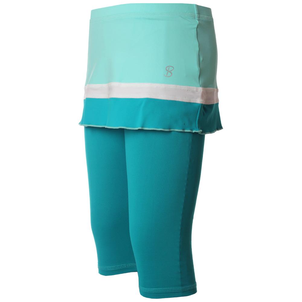 Cute, fun and practical for movement on court! This two-in-one full skirt over capris provides great coverage, quick dry fabric, sun protection and anti-bacterial treatment.