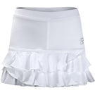A classic tennis skort with a cute asymmetrical layered ruffle twist! The revolution skort features an elastic waistband, built-in ball tights, cute tiered ruffle pleat detail, UPF 50 sun protection, anti-odor fabric, and a flattering straight lined cut.