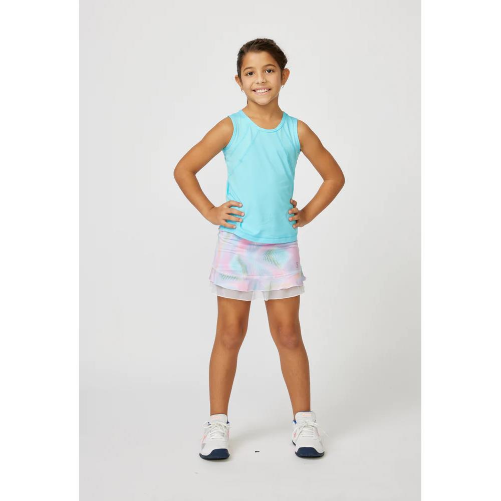 Reach for the stars and play with your heart in this Sofibella tennis skort! Crafted with Sofibella's softest performance fabric and eclectic prints you can choose from. This skort features a built-in shortie and an elastic waistband. Pair this skort with any top from the Colour Girl's Sofibella styles.
