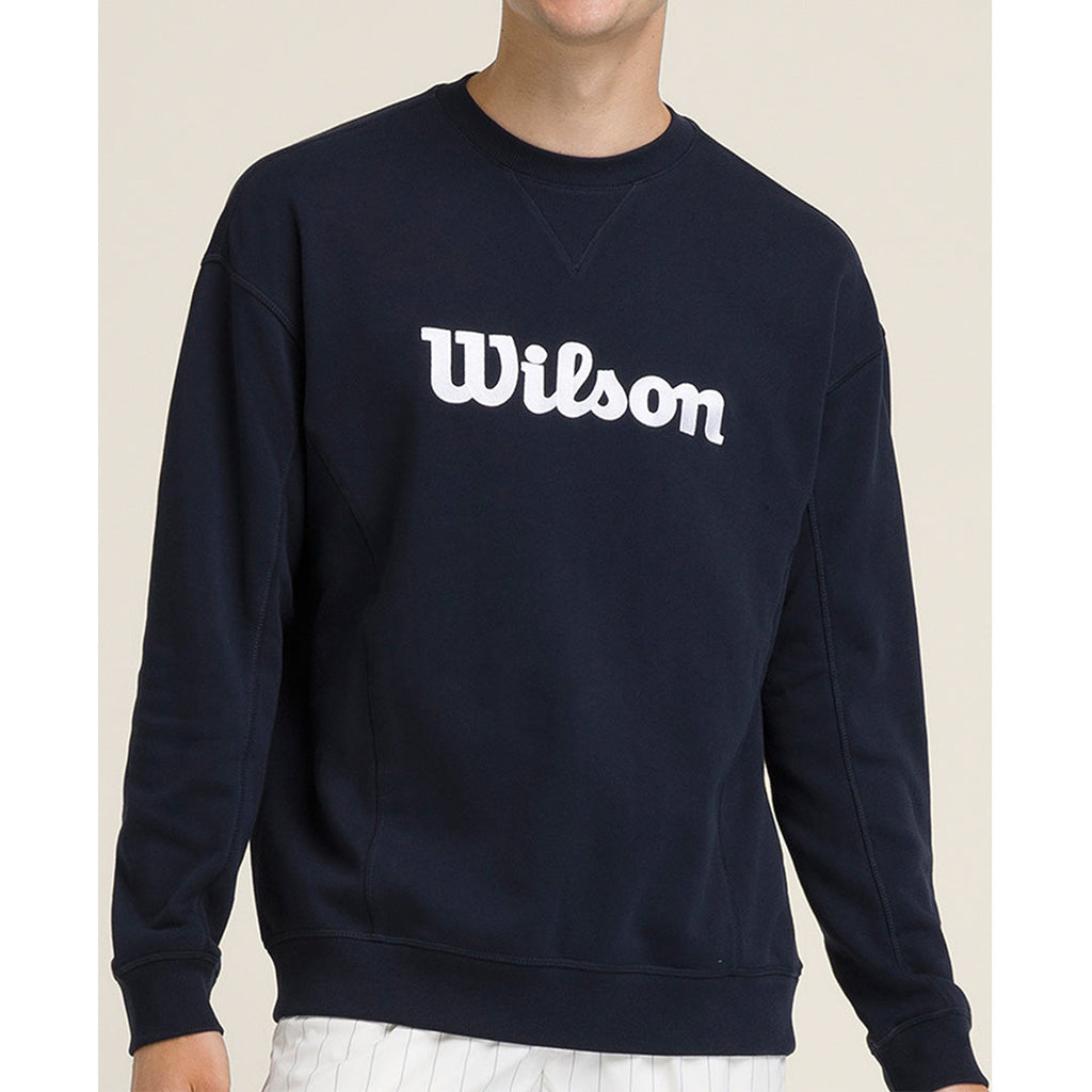 Comfortable navy sweater from Wilson. Relax on the go in the Parkside Crew. On busy days or recovery days, it's all about keeping you comfortable. Wilson’s lightweight French terry fabric is soft to the touch, giving you a layer of warmth without weighing you down. The best part about this crew is its basketball-inspired style that adds hardwood energy to whatever you've got going on today.